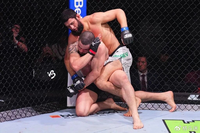 这段视频由UFC Eurasia发布,视频中奇马耶夫与多位训练伙伴进行对练。其中与朗特里的交锋尤为引人注目——朗特里曾在UFC 307与佩雷拉激战四回合,在比赛前半段表现不俗。但在这次训练中被奇马耶夫的清晰的重击命中,被迫单膝跪地。当然,训练结束后两人均无大碍。